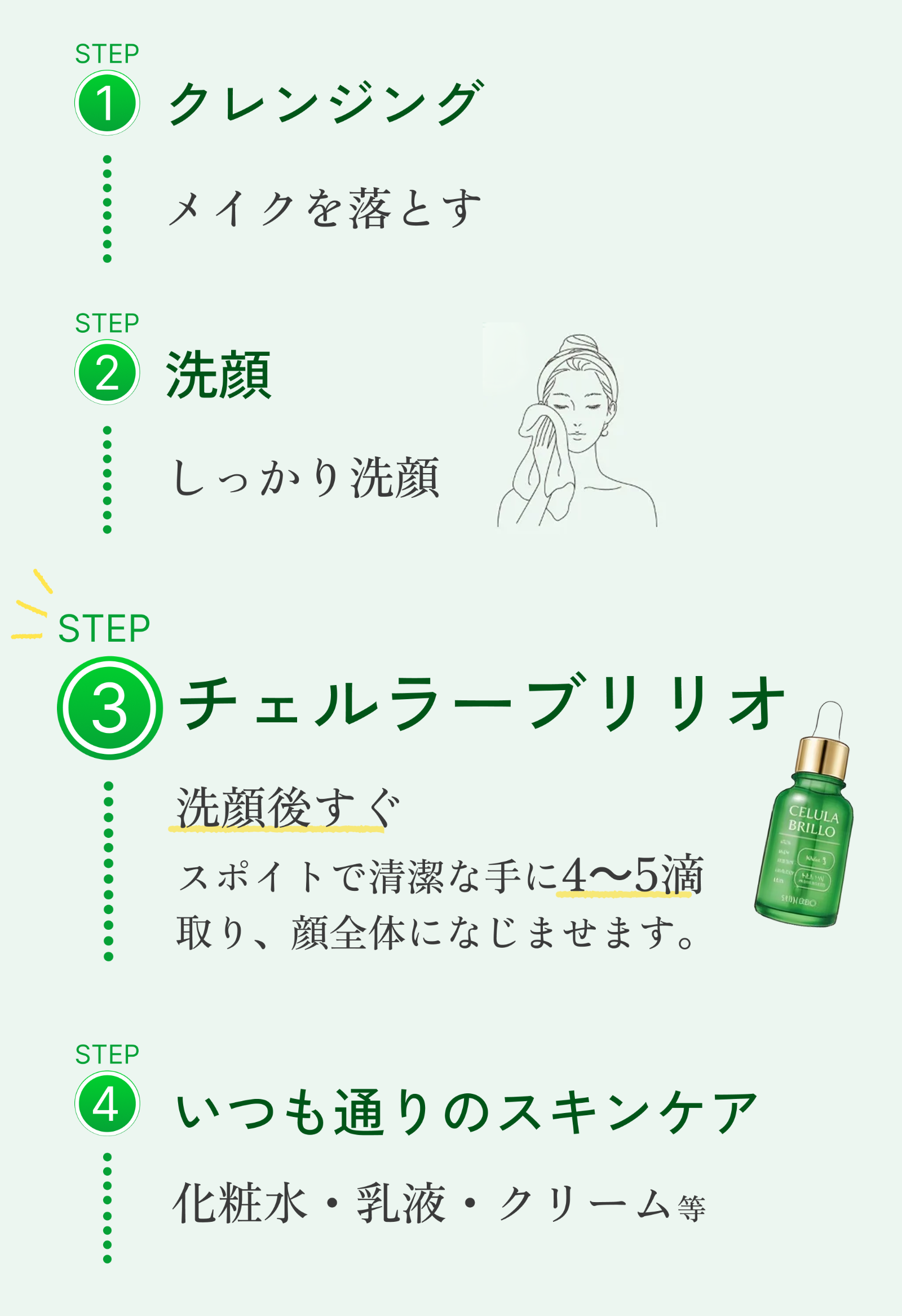 洗顔後すぐに、4~5滴塗るだけ!
