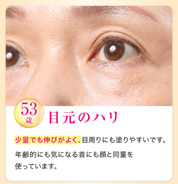 気になる目の下のたるみ・ほうれい線、首元のシワ、手のシワにはたっぷり塗っています。