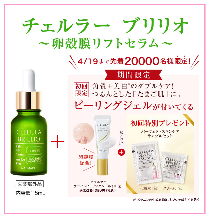 チェルラーブリリオは独自成分「卵殻膜」だけでなくシワ改善ができる【医薬部外品】の美容液!